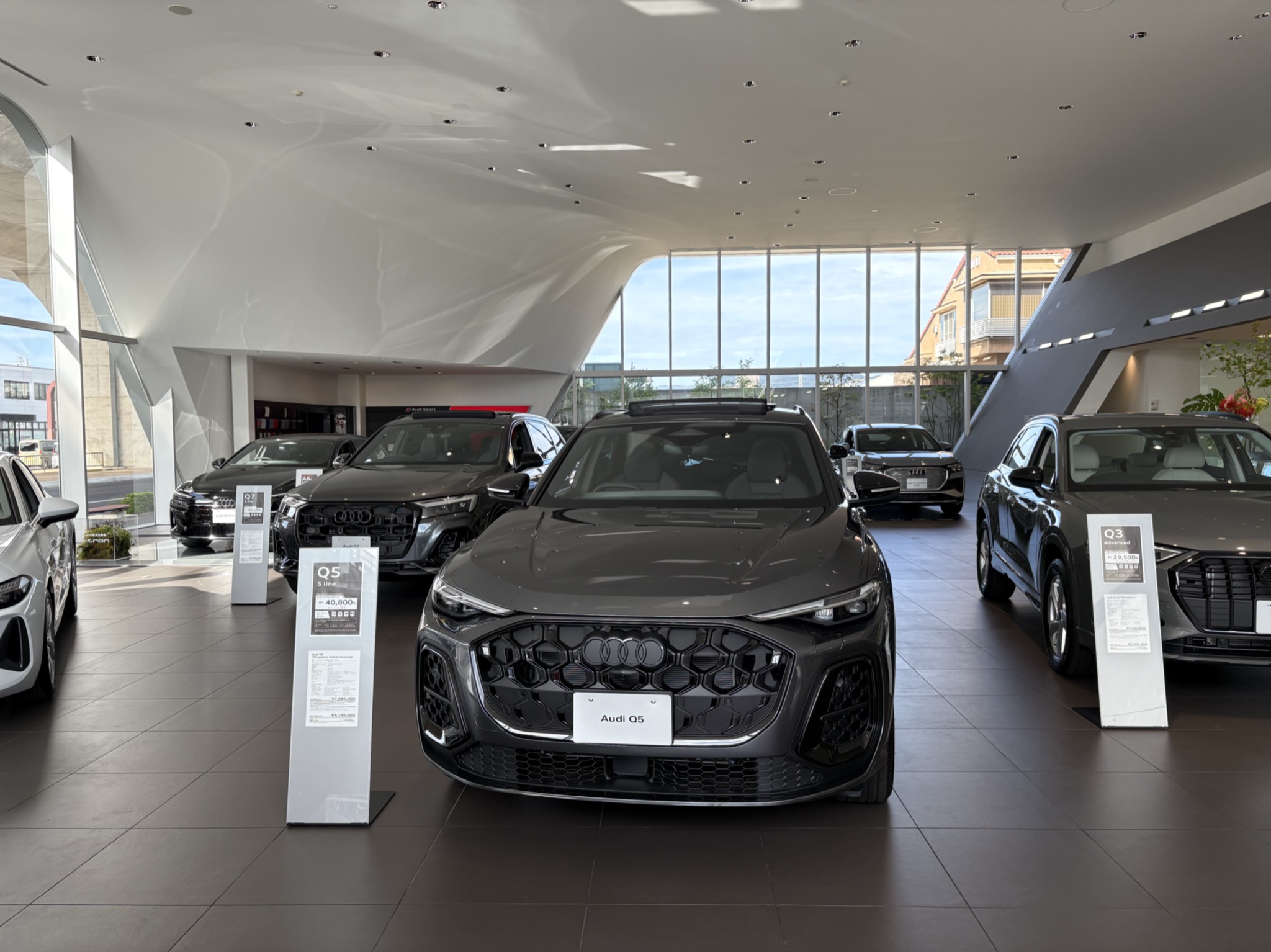 人気のQモデルSUVまで幅広く展示中